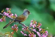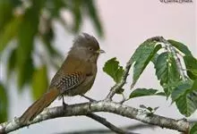 栗额斑翅鹛是噪眉科、斑翅鹛属中型鸟类,体长20-23厘米。头顶具浓密的羽冠,前额栗棕色,头顶灰褐色。上体棕褐色,两翅棕褐色具黑色横斑,翅基外缘有一黑斑,尾呈凸状,棕褐色具黑色横斑。下体棕褐色,…全部>>