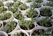 白凤菊,别名姬鹿角,番杏科、覆盆花属,原产地位于南非及美国部分沿海地区。喜温暖干燥和阳光充足的环境,耐旱,怕水湿,无明显休眠期。多年生肉质植物,大株植物呈亚灌木状,茎分枝匍匐或直立,老枝茎干呈棕红色,…全部>>