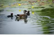 黑水鸡:是鹤形目、秧鸡科的鸟类,共有12个亚种。中型涉禽,体长24-35厘米。嘴长度适中,鼻孔狭长;头具额甲,后缘圆钝;嘴和额甲色彩鲜艳。翅圆形,第2枚初级飞羽最长,或第2枚和第3枚初级飞羽等长,…全部>>