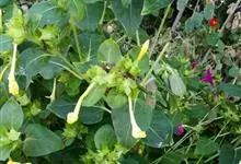 即紫茉莉,英文名:Four-o'clock,Marvel of Peru,为紫茉莉科、紫茉莉属多年生草本植物,一年生栽培。株高50~80cm。根粗壮,茎多分枝而散生。叶对生,卵形或心脏形。花数朵簇生…全部>>