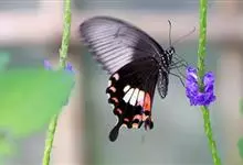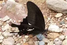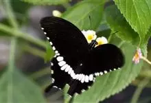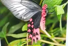 玉斑凤蝶Papilio helenus 别名白纹凤蝶,是凤蝶科凤蝶属美凤蝶亚属大型种类。雌雄同型;体翅皆黑色,后翅正面中室外有3个并列的白色斑,亚外缘有1列模糊的新月形红色斑,…全部>>