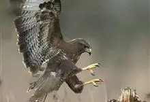 普通鵟:是鹰科、鵟属鸟类,属中型猛禽。体长54厘米,翼展122-137厘米,体重515-810克。体色变化较大,上体主要为暗褐色,下体主要为暗褐色或淡褐色,具深棕色横斑或纵纹,尾淡灰褐色,…全部>>