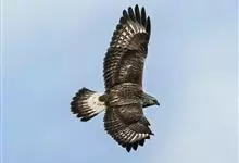 普通鵟:是鹰科、鵟属鸟类,属中型猛禽。体长54厘米,翼展122-137厘米,体重515-810克。体色变化较大,上体主要为暗褐色,下体主要为暗褐色或淡褐色,具深棕色横斑或纵纹,尾淡灰褐色,…全部>>