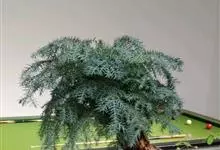 澳洲杉,常绿乔木,一般盆栽为幼树,高在2米以下。喜温暖、潮湿的环境,树冠尖塔形,深绿色。茎干直立,侧枝轮生,水平伸展。小枝二列互生,水平延伸或略下垂。叶有二型。球果近圆形。 全部>>