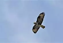 普通鵟:是鹰科、鵟属鸟类,属中型猛禽。体长54厘米,翼展122-137厘米,体重515-810克。体色变化较大,上体主要为暗褐色,下体主要为暗褐色或淡褐色,具深棕色横斑或纵纹,尾淡灰褐色,…全部>>