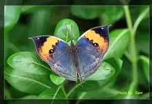 枯叶蛱蝶,又名木叶蝶、树叶蝶等,属于蛱蝶科。翅正面黑褐色,具深蓝色光泽,前翅顶角尖出,顶区有1枚小白点,中部有1条倾斜的橙色斑带,从前缘延伸至Cu室外缘,u室中部有1枚黑色圆斑,…全部>>