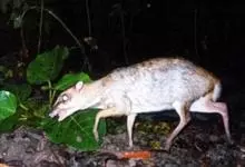鼷鹿,别名小鼷鹿,共38个亚种。体形略比野兔大,体重1.3~2.0kg,体长420~630mm,肩高约200mm,是仅次于蹄兔目成员最小的有蹄类动物,也是鼷鹿科种体型最小的一种。面部尖长,无角,…全部>>