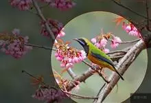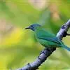 蓝翅叶鹎:小型鸟类,体长15-18厘米。雄鸟通体草绿色,尾蓝绿色,肩和翅亮蓝 色,胸缀有黄色,颏、喉黑色。雌鸟颏,喉蓝绿色。栖息在海拔1500米以下的常绿阔叶林、次生林和林缘疏林灌丛中。…全部>>