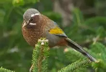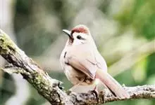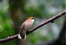 白颊噪鹛是雀形目噪鹛科噪鹛属鸟类,又称土画眉、小画眉、小噪鹃。成鸟额至头顶栗褐色,长眉纹、眼先和颊纹棕白色,眼后至耳羽深褐色,…全部>>