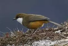 白喉噪鹛中型鸟类,体长26~30厘米。前额或整个头顶棕栗色,其余上体橄榄褐色。颏、喉白色,胸具橄榄褐色横带,腹辉棕色或棕白色。外侧四对尾羽具宽阔的白色端斑。指名亚种的额呈棕色,…全部>>