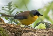 黄喉噪鹛体型略小,顶冠蓝灰色,特征为具黑色的眼罩和鲜黄色的喉。上体褐色,尾端黑色而具白色边缘,腹部及尾下覆羽皮黄色而渐变成白色。黄喉噪鹛隐匿于亚热带常绿林和浓密灌丛,于地面杂物中取食,喜食昆虫,…全部>>