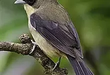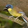 黄喉噪鹛体型略小,顶冠蓝灰色,特征为具黑色的眼罩和鲜黄色的喉。上体褐色,尾端黑色而具白色边缘,腹部及尾下覆羽皮黄色而渐变成白色。黄喉噪鹛隐匿于亚热带常绿林和浓密灌丛,于地面杂物中取食,喜食昆虫,…全部>>