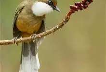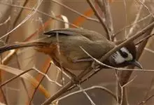 白颊噪鹛是雀形目噪鹛科噪鹛属鸟类,又称土画眉、小画眉、小噪鹃。成鸟额至头顶栗褐色,长眉纹、眼先和颊纹棕白色,眼后至耳羽深褐色,…全部>>