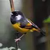 金胸雀鹛是莺科、雀鹛属小型鸟类,体长10-11厘米。头黑色,头顶中央有一道白色中央冠纹,颊和耳羽亦为白色,在黑色的头部极为醒目。上体深灰沾绿。两翅黑色,外侧飞羽有黄色外缘和白色端斑;尾凸状、黑色。…全部>>