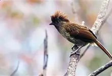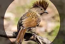 条纹噪鹛是画眉科、噪鹛属中型鸟类,体长28-32厘米。头具短的羽冠,上体栗褐色,飞羽外翻蓝灰色。下体棕栗色,腹以后转为褐白色。除飞羽和尾羽外,所有上、下体羽均具白色羽干纹。极为醒目。野外特征明显,…全部>>