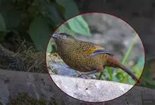 蓝翅噪鹛:噪鹛科、彩翼噪鹛属动物。中型鸟类,体长22-25厘米。上体棕橄榄褐色密被黑色鳞状斑,眼蓝白色,眼上有一长而宽阔的黑色眉纹,从眼先直到颈侧。下体棕褐色被黑色鳞状斑;尾上和尾上覆羽栗色,…全部>>