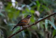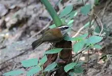 黑顶噪鹛:中型鸟类,体长24-26厘米。前额、脸、颏、喉黑色,头顶黑褐沾棕或深棕橄榄褐色,背栗褐或棕褐色,颧斑白色或棕红色,眼后缘和颈侧亦具白斑,飞羽金黄橄榄色而具蓝灰色尖端。下体淡棕褐色。…全部>>