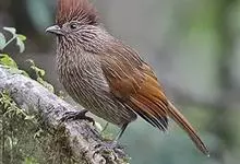 白颊噪鹛是雀形目噪鹛科噪鹛属鸟类,又称土画眉、小画眉、小噪鹃。成鸟额至头顶栗褐色,长眉纹、眼先和颊纹棕白色,眼后至耳羽深褐色,…全部>>