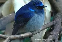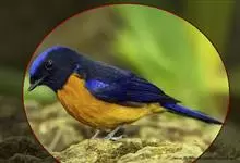 棕腹大仙鹟:体重24-28克,体长15-17厘米,是一种小型的色彩亮丽的鹟。雄鸟上体深蓝,下体棕色,脸黑,额、颈侧小块斑、翼角及腰部亮丽闪辉蓝色。与棕腹仙鹟易混淆,区别在色彩较暗。雌鸟灰褐,…全部>>