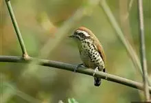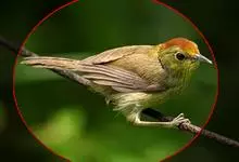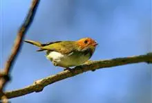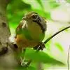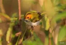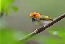 棕脸鹟莺:体长10厘米,是一种色彩亮丽而有特色的莺鸟。头栗色,具黑色侧冠纹。上体绿,腰黄色。下体白,颏及喉杂黑色点斑,上胸沾黄。与栗头鹟莺的区别在头侧栗色,白色眼圈不显著且无翼斑。…全部>>