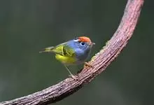 栗头鹟莺为鹟科、鹟莺属的鸟类。全长75-100毫米。前额、头顶至后枕棕栗色;侧冠纹黑色;上背沾灰,下背橄榄绿,腰和尾上覆羽亮黄色;眼圈白色,…全部>>