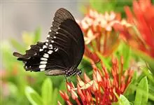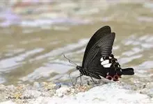 玉斑凤蝶Papilio helenus 别名白纹凤蝶,是凤蝶科凤蝶属美凤蝶亚属大型种类。雌雄同型;体翅皆黑色,后翅正面中室外有3个并列的白色斑,亚外缘有1列模糊的新月形红色斑,…全部>>
