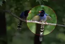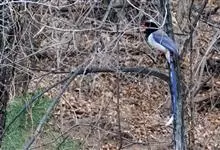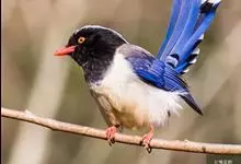 红嘴蓝鹊,别名山鹊、长尾鹊,是鸦科蓝鹊属的一种观赏性较强的大型鸣禽。该物种为体长54~65cm,头、颈、喉和胸黑色,头顶至后颈有一块白色至淡蓝白色或紫灰色块斑,其余上体紫蓝灰色或淡蓝灰褐色。尾长呈凸状,…全部>>