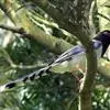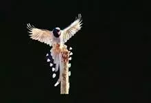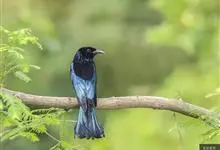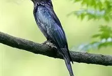 发冠卷尾是中型鸟类,体长28-35厘米。通体绒黑色缀蓝绿色金属光泽,额部具发丝状羽冠,外侧尾羽末端向上卷曲。栖息于海拔1500米以下的低山丘陵和山脚沟谷地带,多在常绿阔叶林、次生林或人工松林中活动。…全部>>