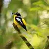 棕腹大仙鹟:体重24-28克,体长15-17厘米,是一种小型的色彩亮丽的鹟。雄鸟上体深蓝,下体棕色,脸黑,额、颈侧小块斑、翼角及腰部亮丽闪辉蓝色。与棕腹仙鹟易混淆,区别在色彩较暗。雌鸟灰褐,…全部>>