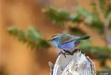 凤头雀莺:小型鸟类。体长9-10厘米,雄鸟呈毛茸茸的紫色和绛紫色,顶冠淡紫灰色,额及凤头白色,尾全蓝。雌鸟喉及上胸白,至臀部渐变成淡紫色,耳羽灰,…全部>>