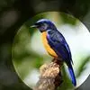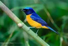 棕腹大仙鹟:体重24-28克,体长15-17厘米,是一种小型的色彩亮丽的鹟。雄鸟上体深蓝,下体棕色,脸黑,额、颈侧小块斑、翼角及腰部亮丽闪辉蓝色。与棕腹仙鹟易混淆,区别在色彩较暗。雌鸟灰褐,…全部>>