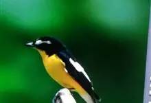 白眉姬鹟是小型鸟类,体长11-14厘米。雄鸟上体大部黑色,眉纹白色,在黑色的头上极为醒目。腰鲜黄色,两翅和尾黑色,翅上具白斑。下体鲜黄色。雌鸟上体大部橄榄绿色。腰鲜黄色,翅上亦具白斑。下体淡黄绿色。…全部>>