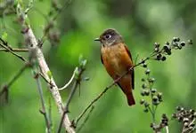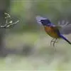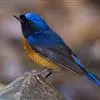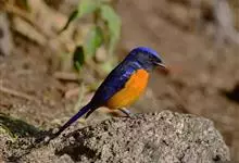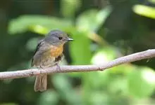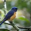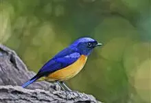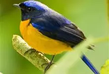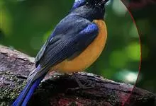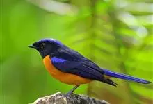 棕腹大仙鹟:体重24-28克,体长15-17厘米,是一种小型的色彩亮丽的鹟。雄鸟上体深蓝,下体棕色,脸黑,额、颈侧小块斑、翼角及腰部亮丽闪辉蓝色。与棕腹仙鹟易混淆,区别在色彩较暗。雌鸟灰褐,…全部>>