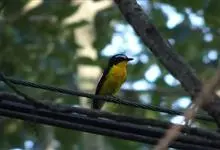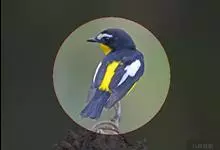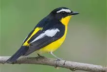 白眉姬鹟是小型鸟类,体长11-14厘米。雄鸟上体大部黑色,眉纹白色,在黑色的头上极为醒目。腰鲜黄色,两翅和尾黑色,翅上具白斑。下体鲜黄色。雌鸟上体大部橄榄绿色。腰鲜黄色,翅上亦具白斑。下体淡黄绿色。…全部>>