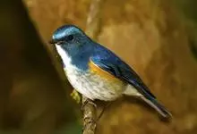 红胁蓝尾鸲俗名:蓝点冈子、蓝尾巴根子、蓝尾杰、蓝尾欧鸲。体型略小而喉白的鸲。特征为橘黄色两胁与白色腹部及臀成对比。雄鸟上体蓝色,眉纹白;亚成鸟及雌鸟褐色,尾蓝。…全部>>