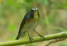 红胁蓝尾鸲俗名:蓝点冈子、蓝尾巴根子、蓝尾杰、蓝尾欧鸲。体型略小而喉白的鸲。特征为橘黄色两胁与白色腹部及臀成对比。雄鸟上体蓝色,眉纹白;亚成鸟及雌鸟褐色,尾蓝。…全部>>