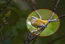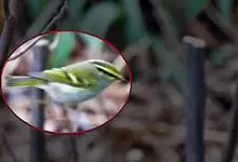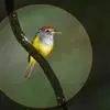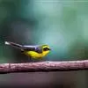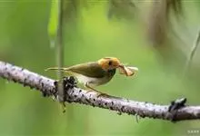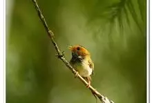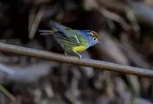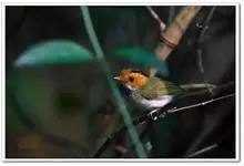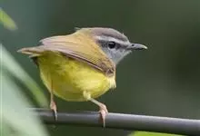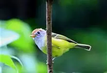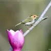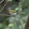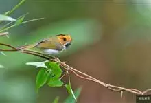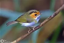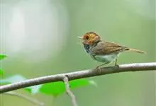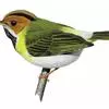 棕脸鹟莺:体长10厘米,是一种色彩亮丽而有特色的莺鸟。头栗色,具黑色侧冠纹。上体绿,腰黄色。下体白,颏及喉杂黑色点斑,上胸沾黄。与栗头鹟莺的区别在头侧栗色,白色眼圈不显著且无翼斑。…全部>>