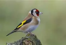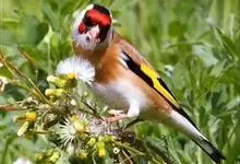红额金翅雀:共有14个亚种。小型鸟类,体长12-14厘米。额、脸颊和颏朱红色,眼先和眼周黑色,在淡色的头部极为醒目。上体灰褐或乌褐色,尾上覆羽白色,两翅和尾黑色,翅上有黄色斑。下体喉、胸灰褐或乌褐色…全部>>