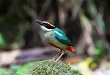 蓝翅八色鸫是雀形目八色鸫科的鸟类。体长17-20厘米,体重类约48-70克,体型圆胖,尾短,腿长,以身体具有红、绿、蓝、白、黑、黄、褐、栗等鲜艳夺目,丰富艳丽的色彩而得名,是很有观赏价值的鸟类。主要…全部>>