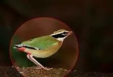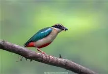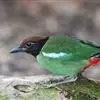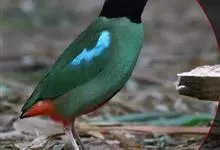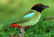 绿胸八色鸫:是雀形目八色鸫科的鸟类,共有12个亚种。体长为16-18厘米,体重65-69克。体型圆胖,尾短,腿长。头黑,上体绿色,两翼深色而具白色斑纹,头顶至后枕深褐,胸及腹部苹果绿,臀亮红。…全部>>