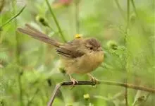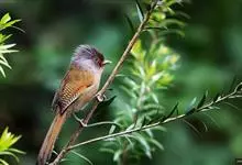 黑喉缝叶莺:体长11.5厘米,是一种小型的顶冠棕色、腹部白色的莺。尾甚长而常上翘,臀黄色,具特征性的偏黑色喉,上体橄榄绿色,头侧灰色。雌鸟色暗,头少红色且喉少黑色。与长尾缝叶莺的区别在后顶冠亦为棕色,…全部>>