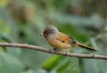 栗额斑翅鹛是噪眉科、斑翅鹛属中型鸟类,体长20-23厘米。头顶具浓密的羽冠,前额栗棕色,头顶灰褐色。上体棕褐色,两翅棕褐色具黑色横斑,翅基外缘有一黑斑,尾呈凸状,棕褐色具黑色横斑。下体棕褐色,…全部>>