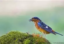 蓝头矶鸫为鹟科矶鸫属的鸟类,是一种候鸟,俗名臭皮翠、白喉叽鸫、白喉石鸫、葫芦翠、虎皮翠。全长19厘米。自额至后颈及翅上的小覆羽均钴蓝色。腰和尾上覆羽浓栗。内侧飞羽有一白色块斑。喉部中央有一大型白斑。…全部>>