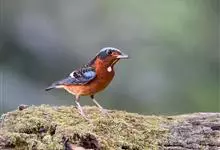 栗腹矶鸫是鸫科、矶鸫属小型鸟类,体长20-25厘米。雄鸟上体呈辉亮的钴蓝色,两翅黑褐色,喉蓝黑色,其余下体栗红色。雌鸟上体橄榄褐色,背具黑色鳞状斑,下体棕白色密杂以黑褐色横斑,黑白相衬,极为醒目,…全部>>