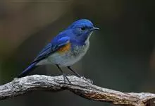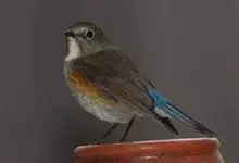 红胁蓝尾鸲俗名:蓝点冈子、蓝尾巴根子、蓝尾杰、蓝尾欧鸲。体型略小而喉白的鸲。特征为橘黄色两胁与白色腹部及臀成对比。雄鸟上体蓝色,眉纹白;亚成鸟及雌鸟褐色,尾蓝。…全部>>