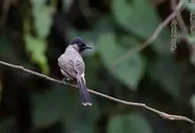 黑喉红臀鹎是雀形目鹎科鹎属鸟类,别称有黑头公、红臀鹎。头顶黑色具光泽;后颈、肩和背暗褐具灰色狭缘;腰羽几纯暗褐,尾上覆羽近白色,羽端浅灰褐色;尾羽褐黑,中央尾羽具狭窄的白色端斑,…全部>>