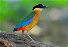 蓝翅八色鸫是雀形目八色鸫科的鸟类。体长17-20厘米,体重类约48-70克,体型圆胖,尾短,腿长,以身体具有红、绿、蓝、白、黑、黄、褐、栗等鲜艳夺目,丰富艳丽的色彩而得名,是很有观赏价值的鸟类。主要…全部>>
