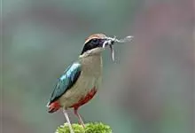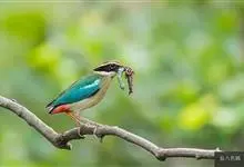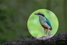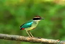 绿胸八色鸫:是雀形目八色鸫科的鸟类,共有12个亚种。体长为16-18厘米,体重65-69克。体型圆胖,尾短,腿长。头黑,上体绿色,两翼深色而具白色斑纹,头顶至后枕深褐,胸及腹部苹果绿,臀亮红。…全部>>