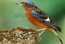 蓝头矶鸫为鹟科矶鸫属的鸟类,是一种候鸟,俗名臭皮翠、白喉叽鸫、白喉石鸫、葫芦翠、虎皮翠。全长19厘米。自额至后颈及翅上的小覆羽均钴蓝色。腰和尾上覆羽浓栗。内侧飞羽有一白色块斑。喉部中央有一大型白斑。…全部>>
