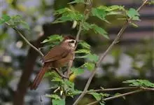 白颊噪鹛是雀形目噪鹛科噪鹛属鸟类,又称土画眉、小画眉、小噪鹃。成鸟额至头顶栗褐色,长眉纹、眼先和颊纹棕白色,眼后至耳羽深褐色,…全部>>